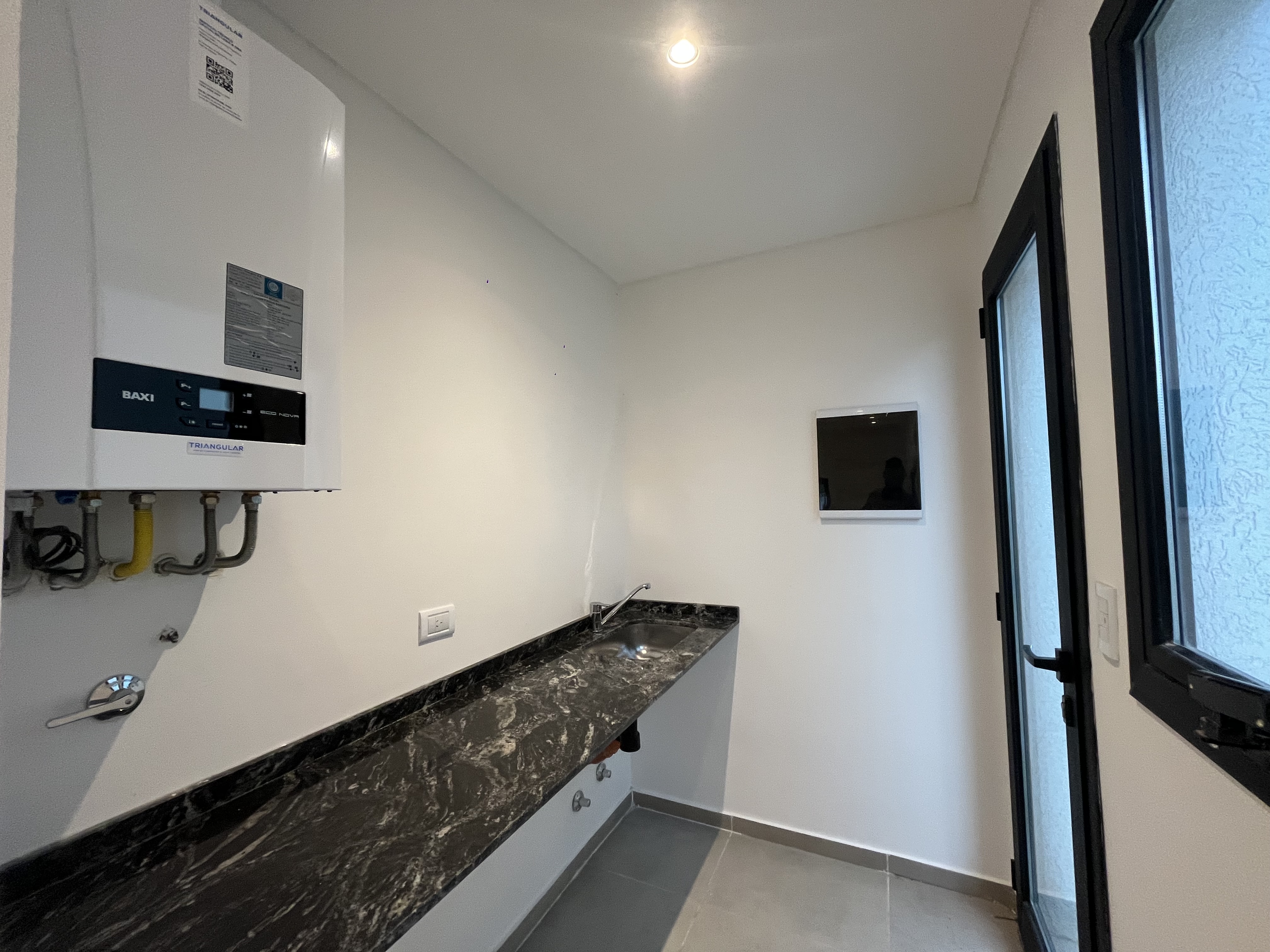 Venta Casa Santa Lucia - Pilar Del Este Superficie: 213m2 Terreno: 495m2 3 dormitorios (uno en suite, otros dos que comparten un baño) Playroom o family Toilette Lavadero Cocina independiente con comedor Amplia galería con parrilla Losa radiante Construccion tradicional Aberturas DVH Pisos porcelanato Caldera dual. Calefacción por losa radiante.